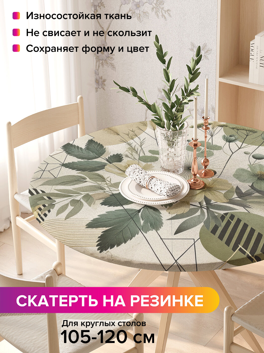 Скатерть на кухонный стол "Природа графики", круглая на резинке, диаметр 105-120 см, JoyArty информация: