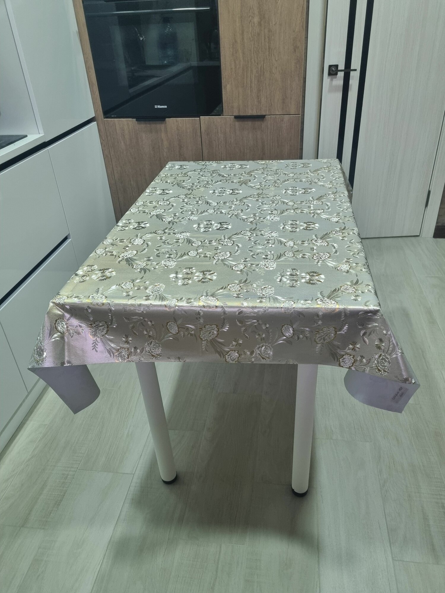 Клеенка-скатерть на стол серебряная с цветами 200х140 1 150 ₽