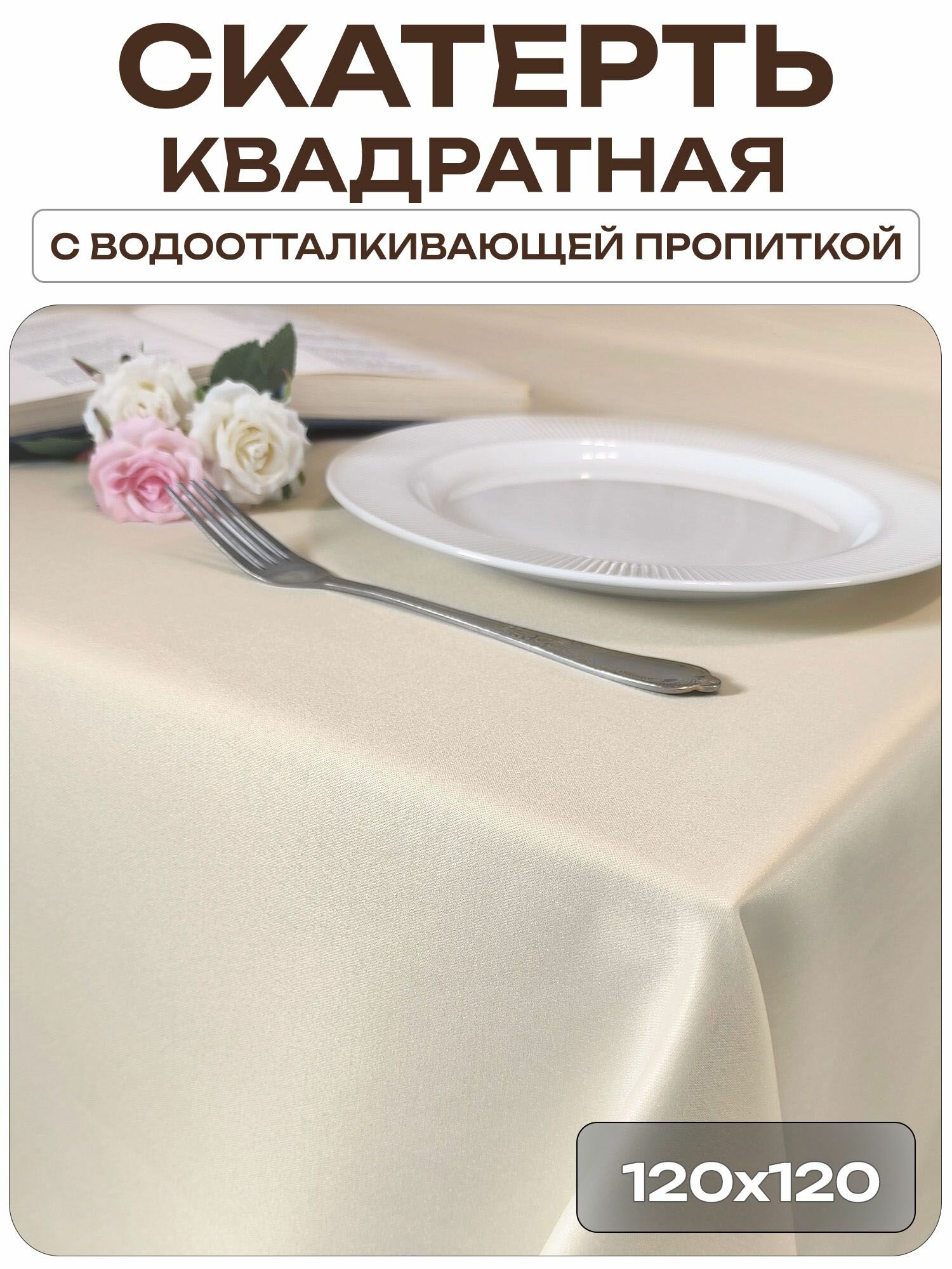 Скатерть 120x120 см. цвет шампань без рисунка с пропиткой от загрязнений ткань Журавинка информация: