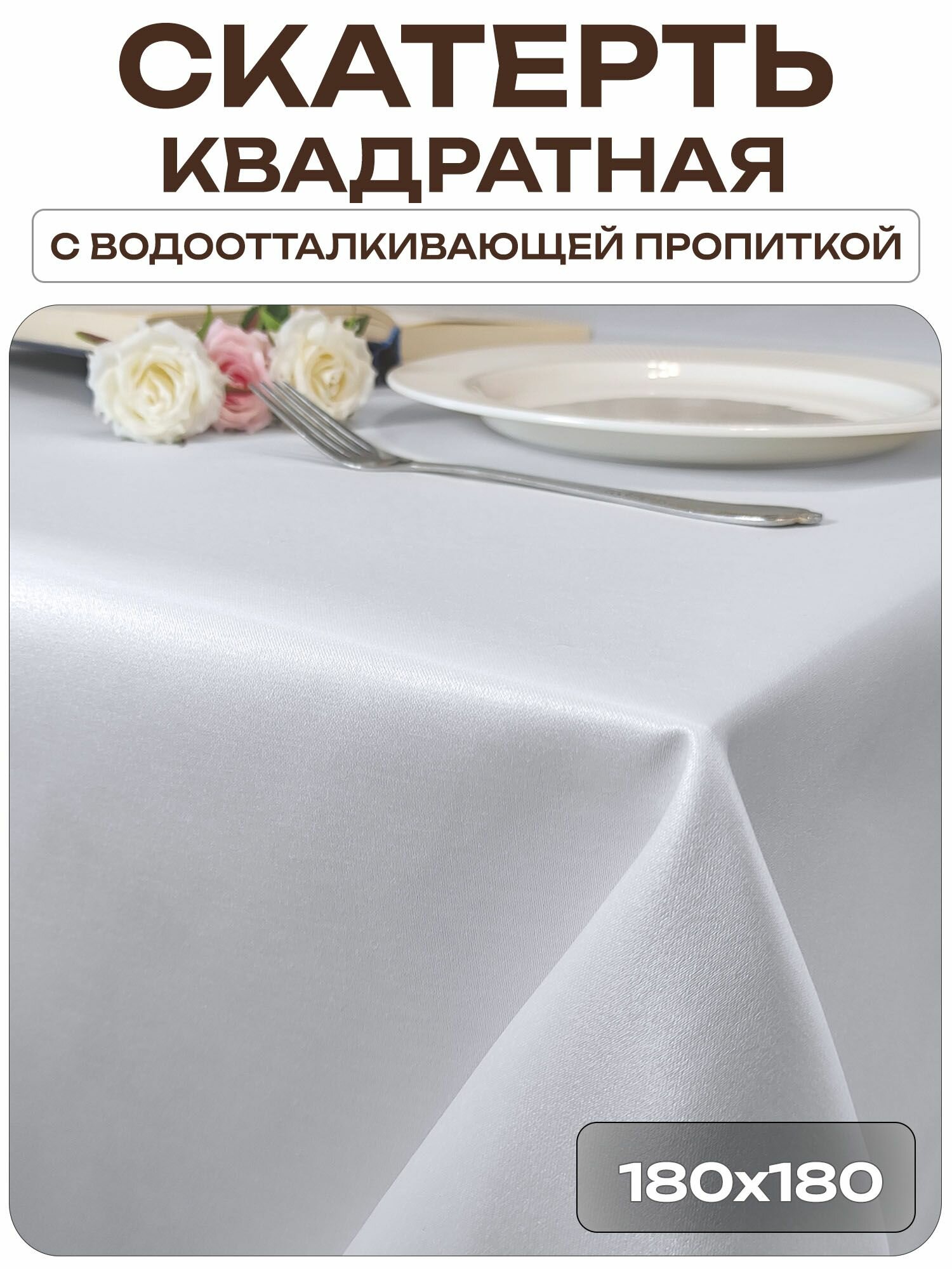 Скатерть 180x180 см. цвет белый без рисунка с пропиткой от загрязнений ткань Журавинка информация: