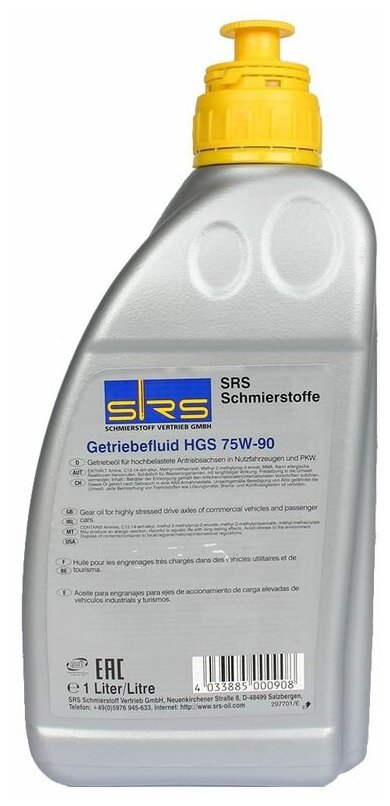 SRS 4033885000908 SRS Масо трансм. Getriebefluid HGS 75W-90 (GL-5) (1 .) 7 780 ₽
