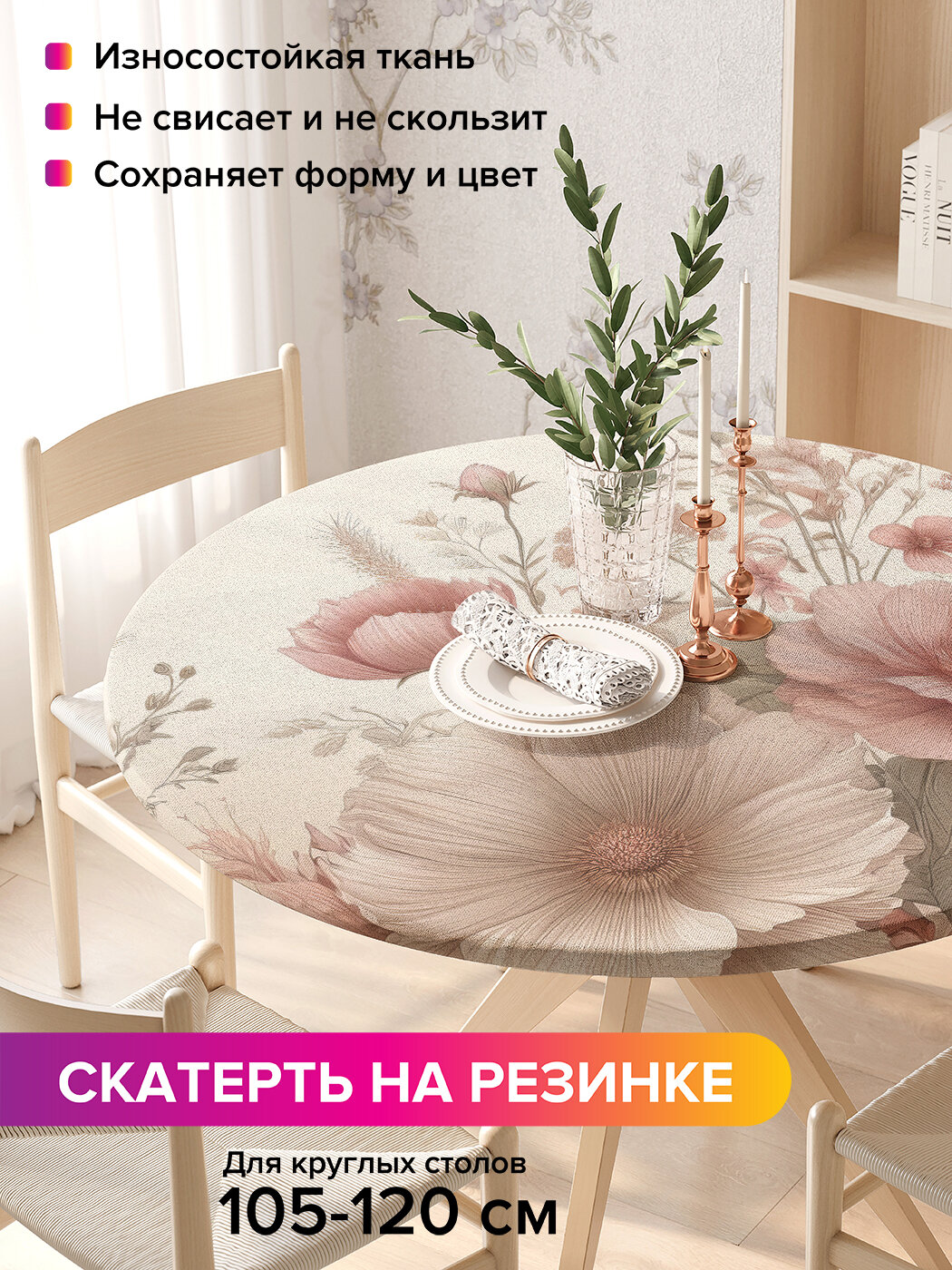 Скатерть на кухонный стол JoyArty JoyArty "Редкие цветы", круглая на резинке, диаметр 105-120 см