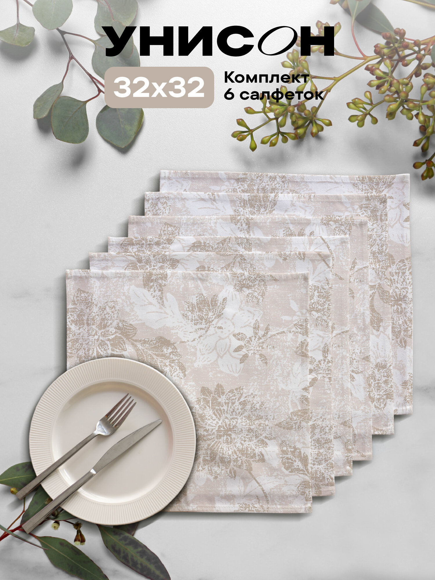 10 цен на Салфетки на стол сервировочные 32х32 (6 шт.) "Унисон" рис 33305-2 Beige jacquard бежевый