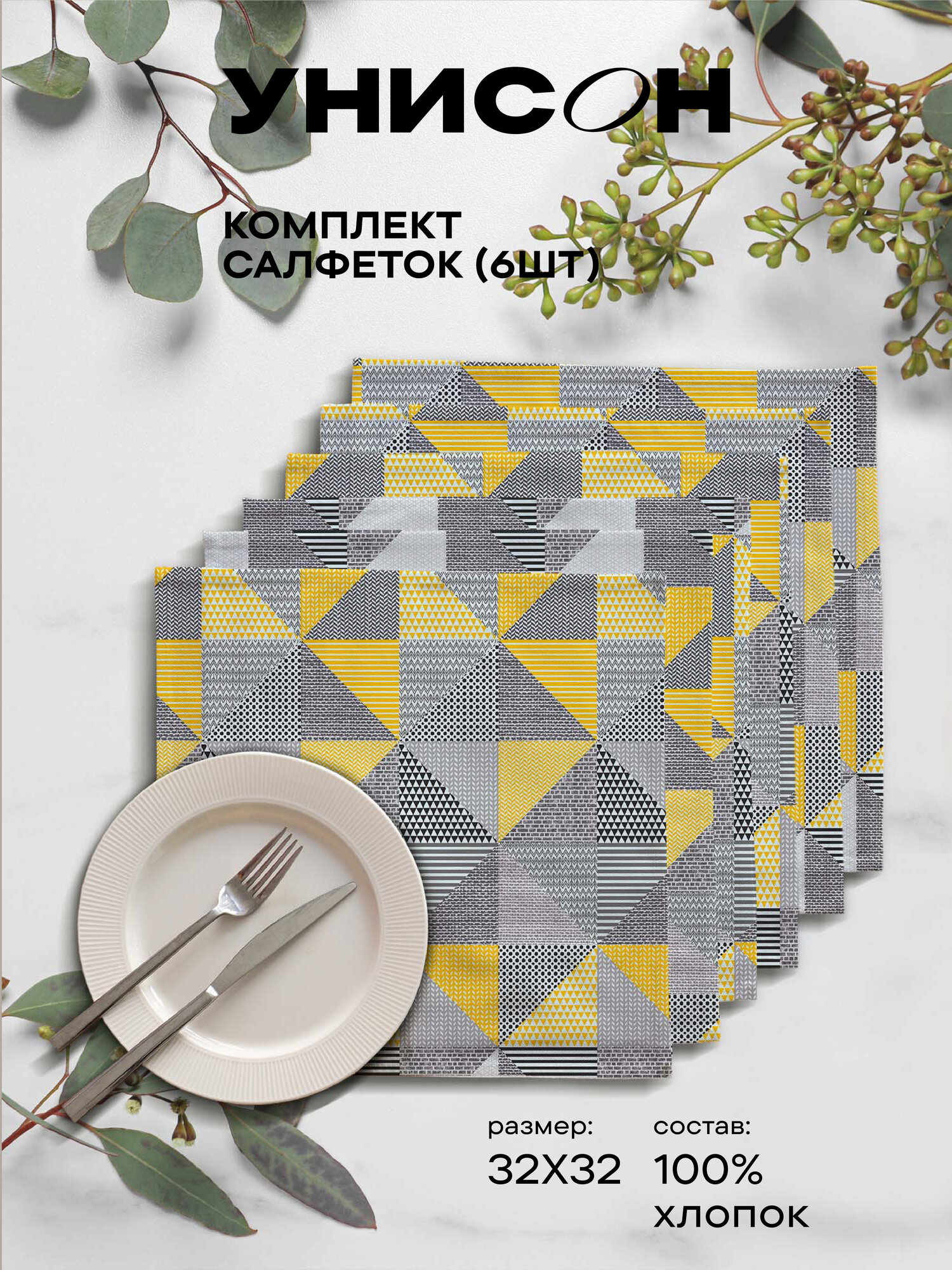 Салфетки на стол сервировочные 32х32 (6 шт.) Унисон рис 33312-1 Olive 320 ₽