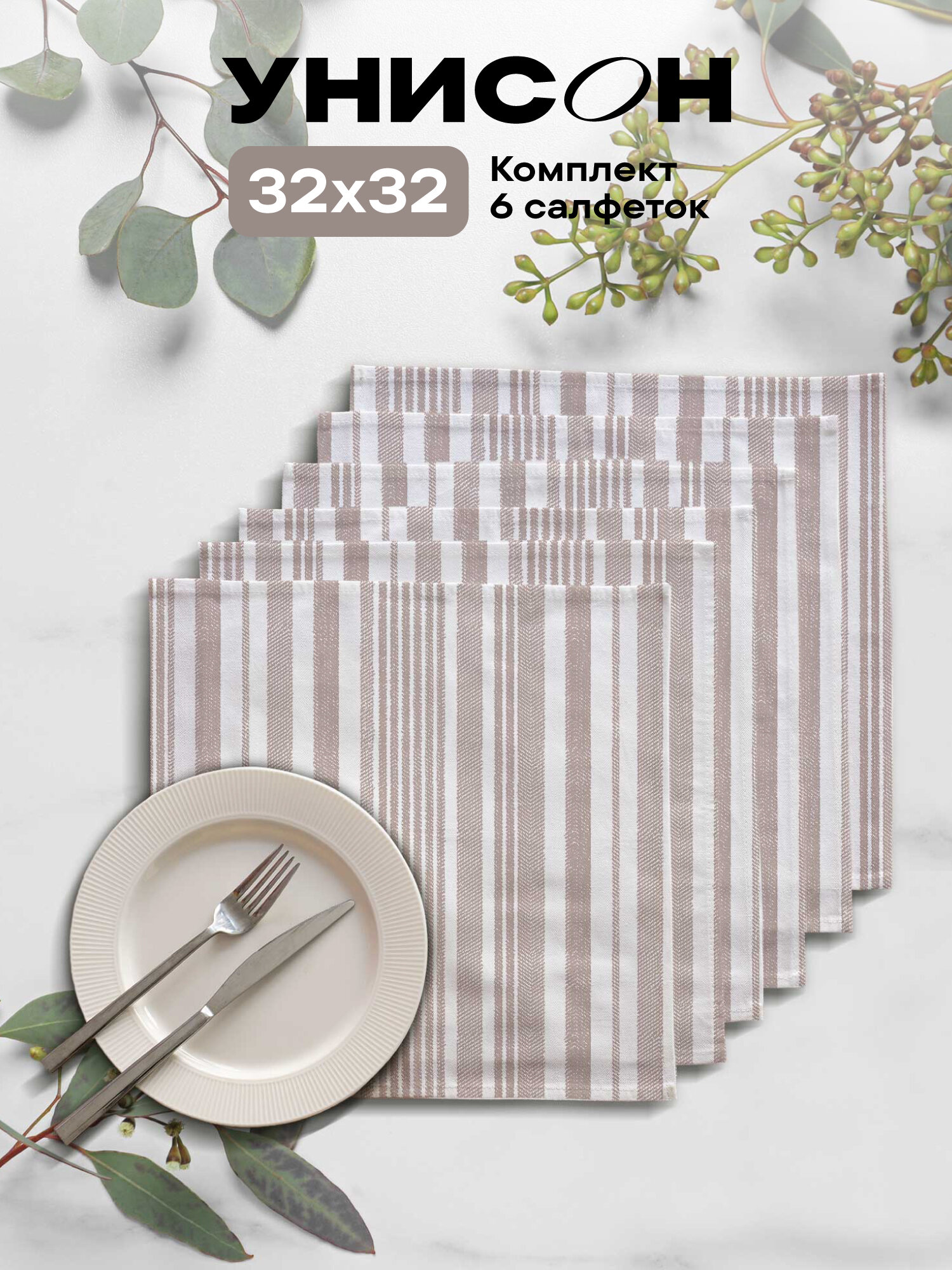 10 цен на Салфетки на стол сервировочные 32х32 (6 шт.) Унисон рис 33308-2 Beige flax бежевая полоса