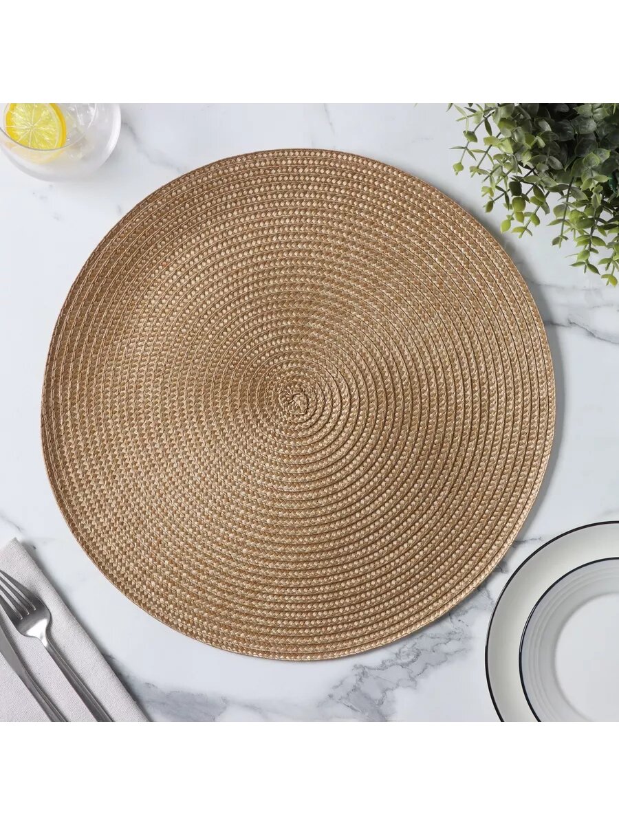 Набор салфеток сервировочных на стол Доляна «Сфера», d=35,5 см, 4 шт, цвет золото, 9912943 498 ₽