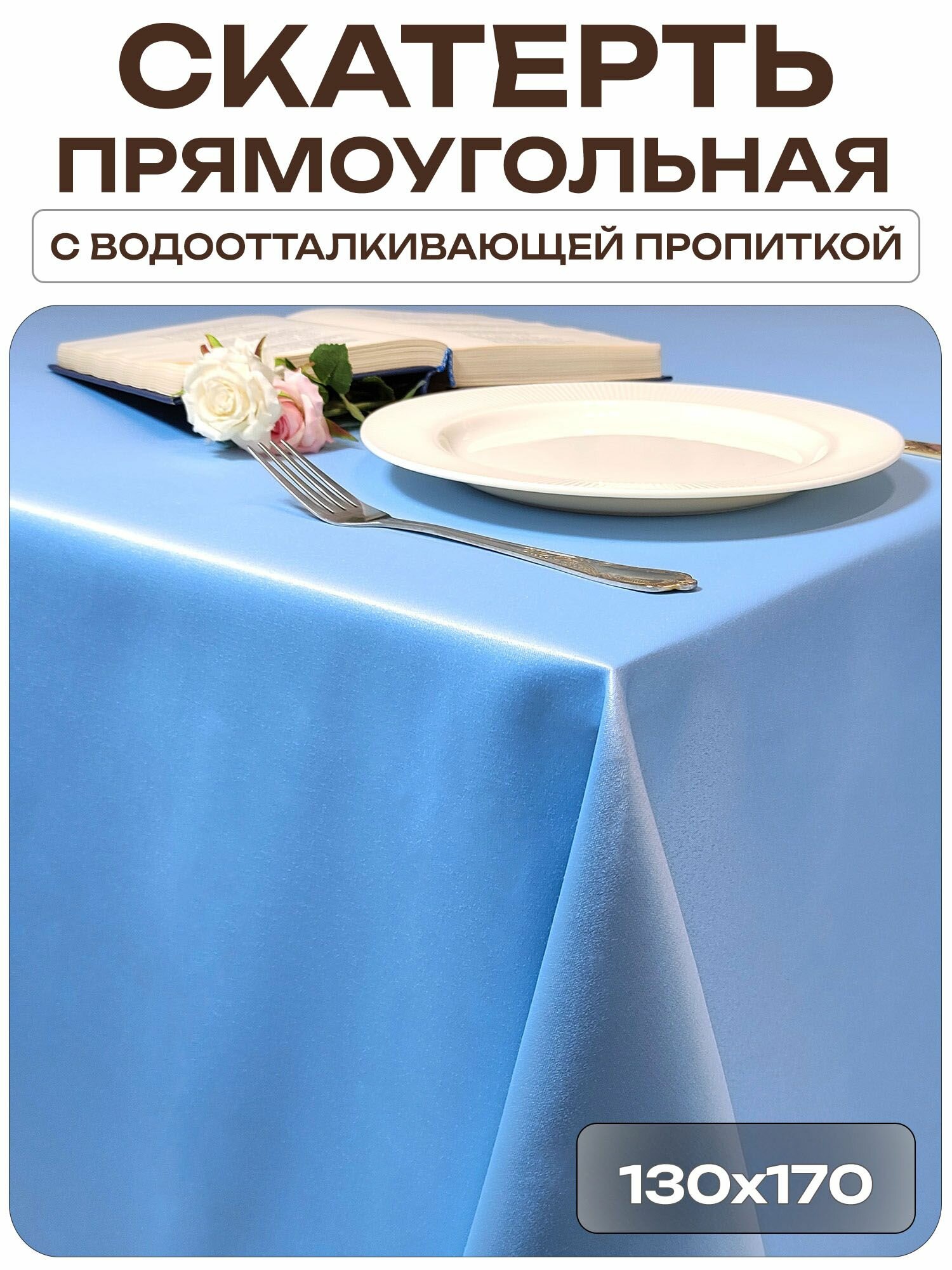 Скатерть 130x170 см. цвет голубой без рисунка с пропиткой от загрязнений информация: