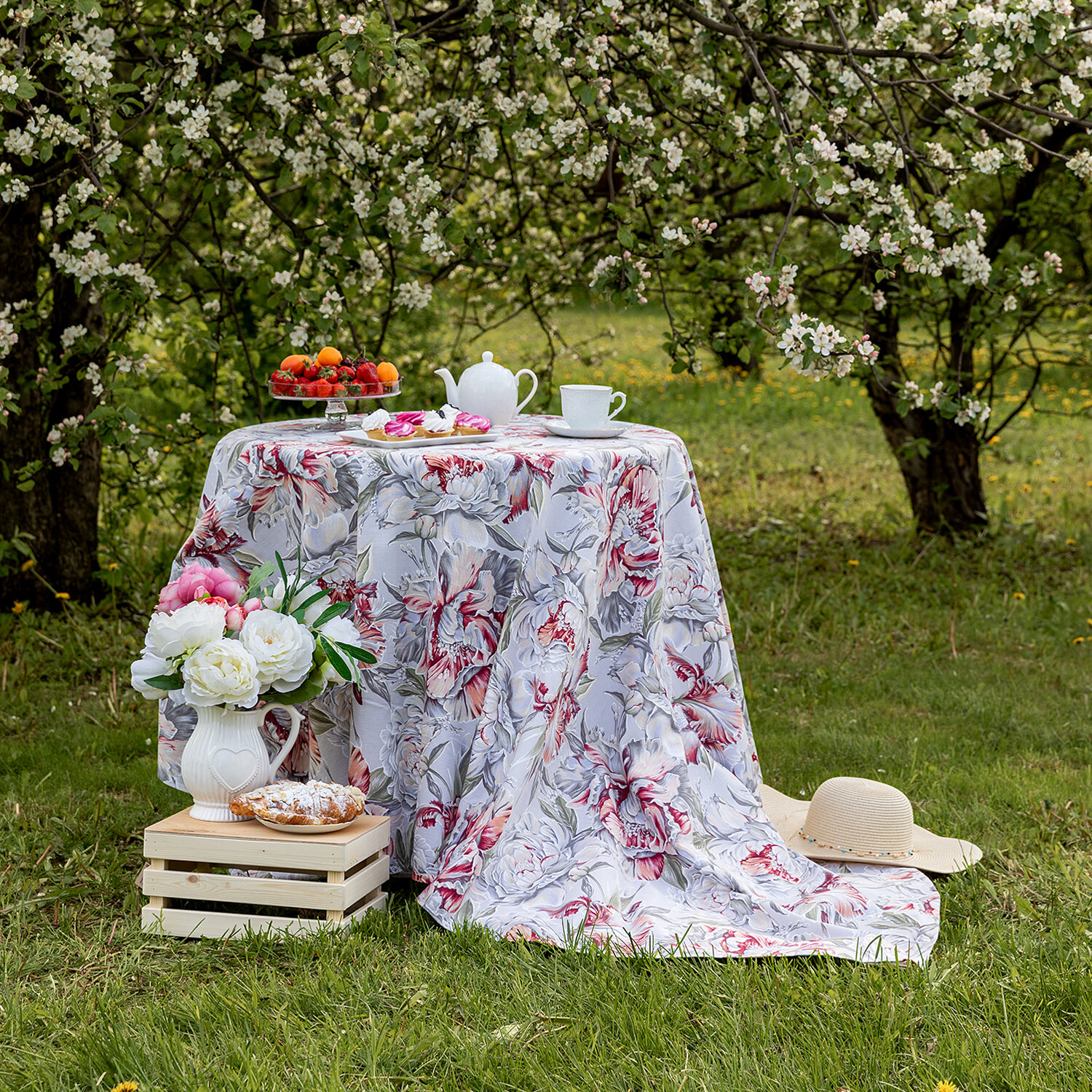Скатерть Mia Cara "Душистый пион", 150 см x 220 см, антискользящее покрытие информация: