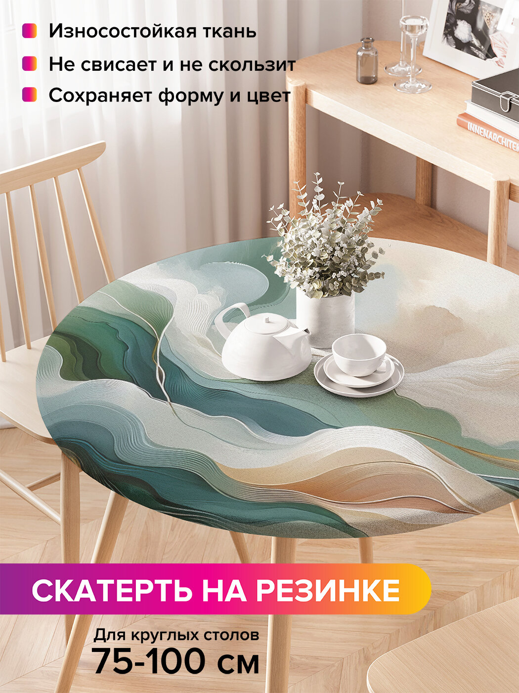 10 цен на Скатерть на кухонный стол "Волна краской", круглая на резинке, диаметр 75-100 см, JoyArty