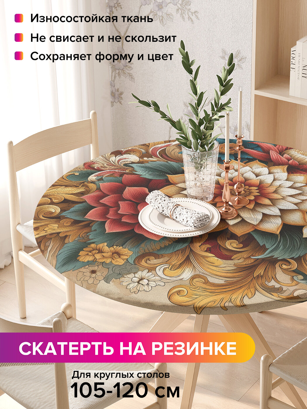 Отзывы на Скатерть на кухонный стол "Сухой букет", круглая на резинке, диаметр 105-120 см, JoyArty