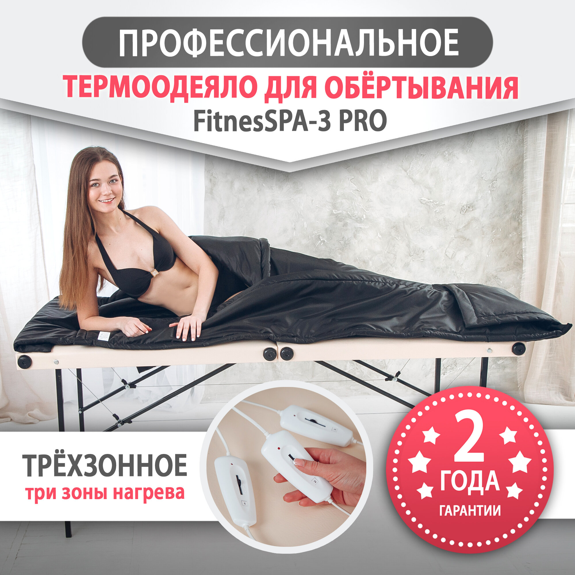Отзывы на Трехзонное термоодеяло для обертывания FitnesSPA 3 PRO профессиональное, черный Black Stone