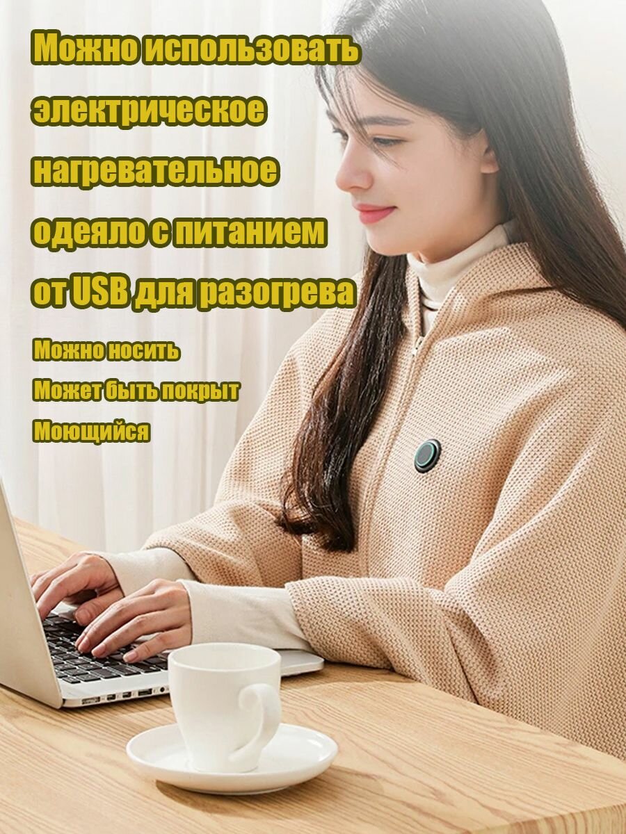 Носимое электрическое одеяло, Электроплед USB-шаль с подогревом, 3 уровня нагрева