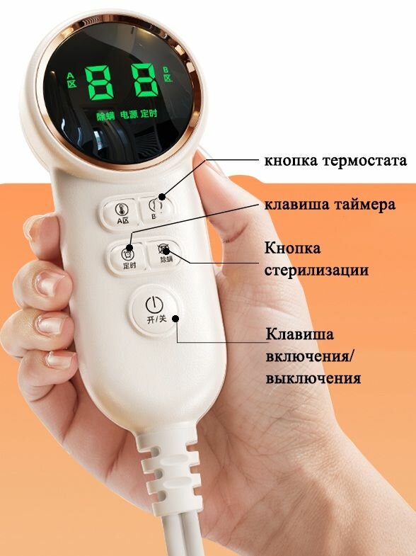 Одеяло с подогревом , электропростынь 150х180 см, электроодеяло, 9 режимов нагрева, 2 зоны оборева.