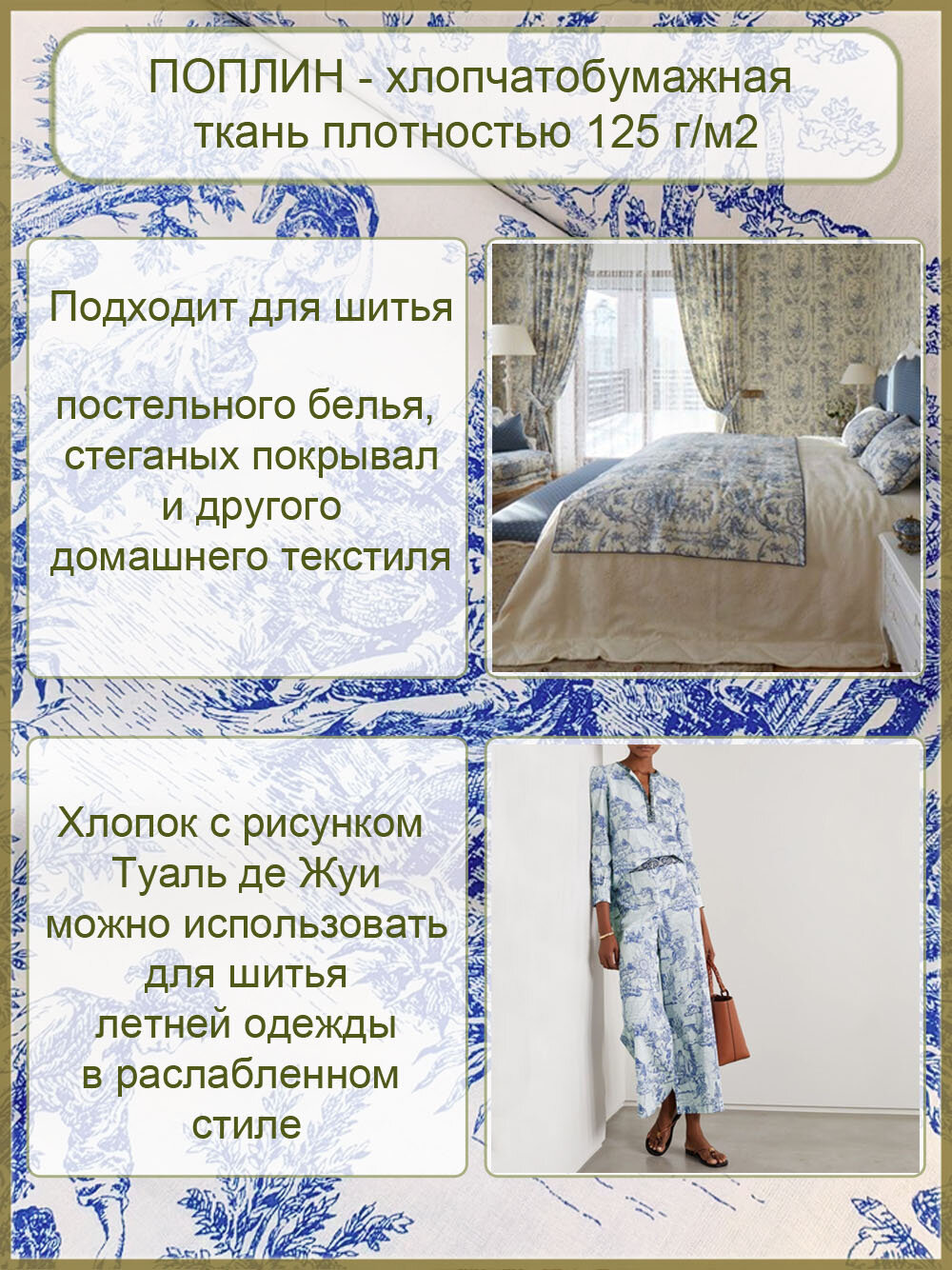 Отзывы на Ткань для шитья, 100 % хлопок поплин Турция, рисунок Туаль де Жуи синий, 1 м х 240 см