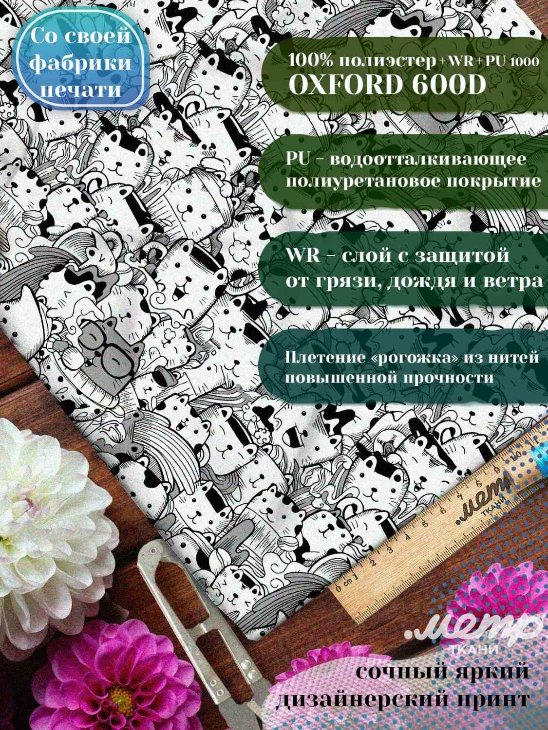 Отзывы на Ткань водоотталкивающая OXFORD 600D PU 1000, рогожка, с принтом Кошки, коты, котики