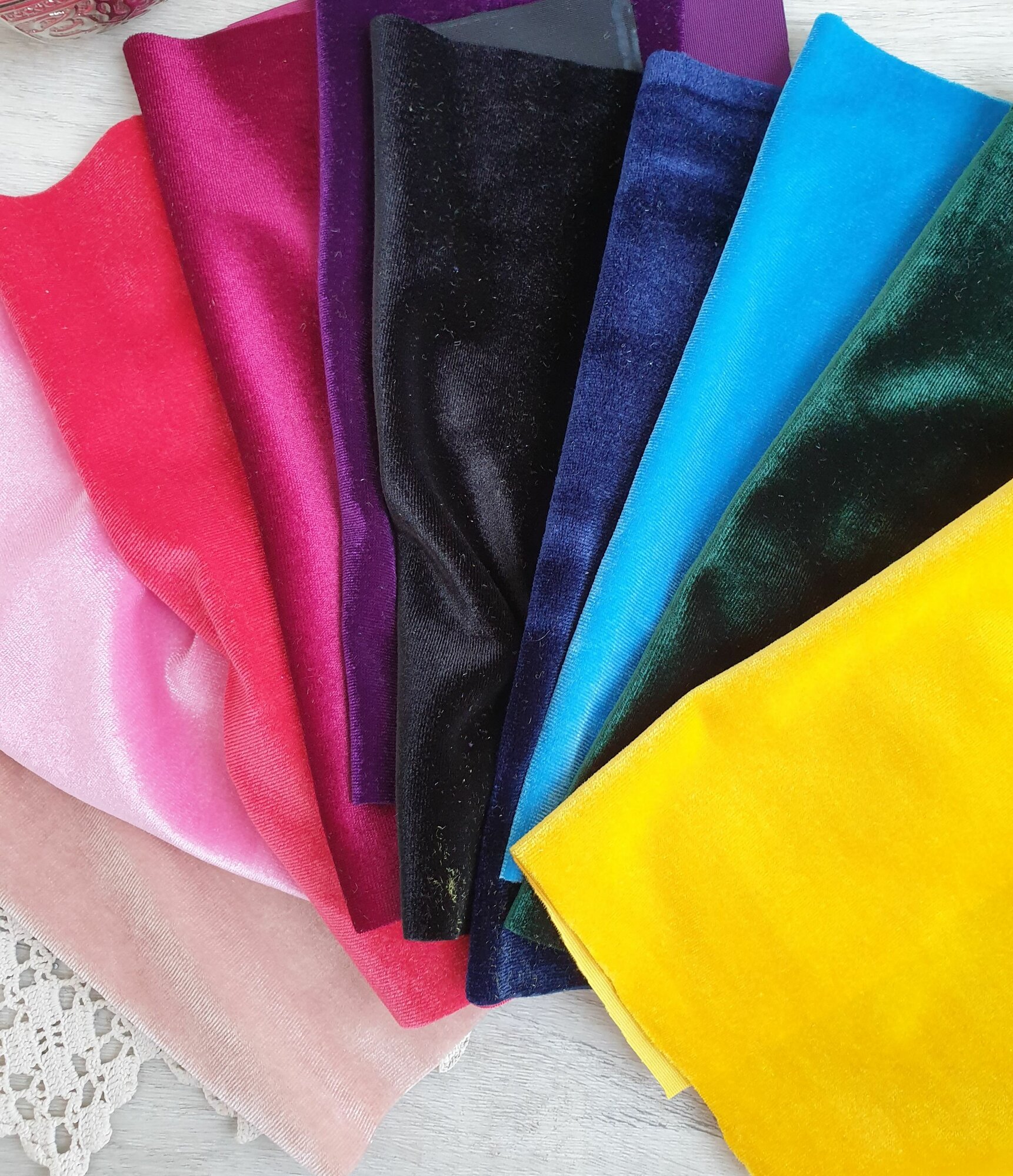 Набор бархат для рукоделия 10 цветов, лоскуты ткани 20х20 см информация: