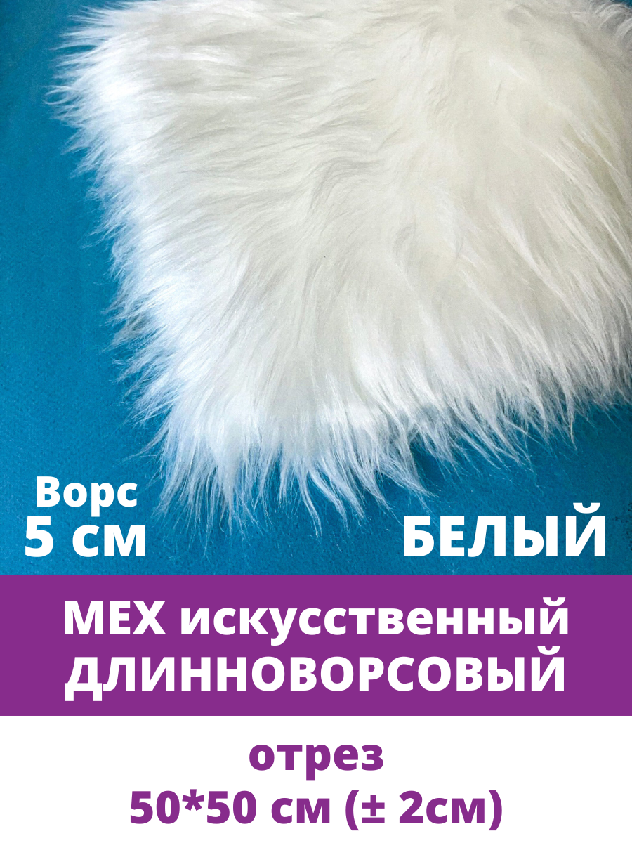 10 цен на Мех длинноворсовый (длина ворса 4,5-5 см), мягкий, искусственный, для рукоделия, 50х50 см, белый