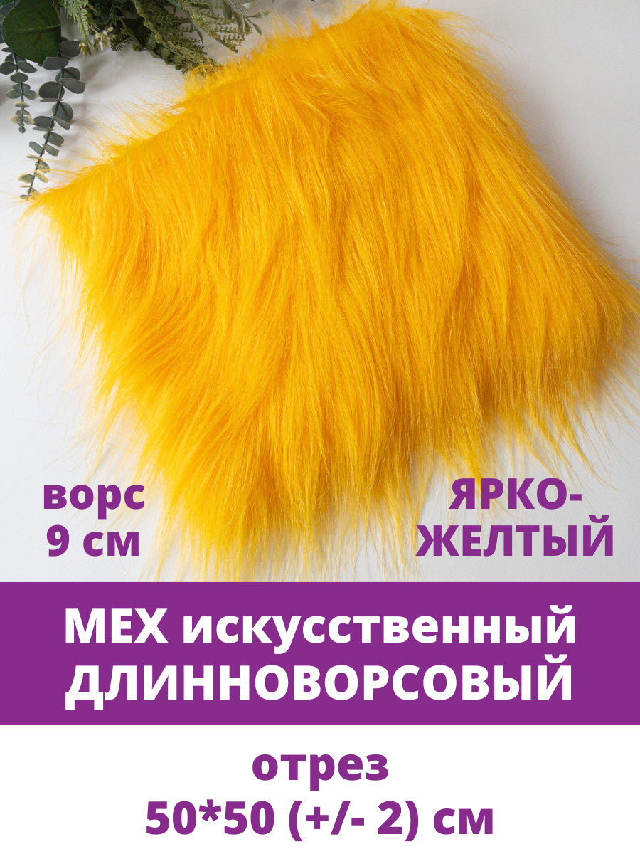 Мех длинноворсовый (ворс 9см) для игрушек, мех искусственный для рукоделия, Ярко желтый, Отрез 50х50 см информация: