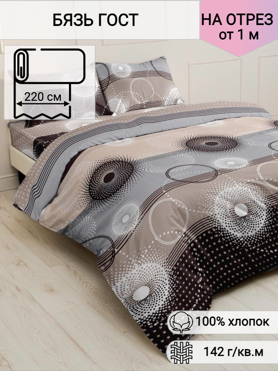 10 цен на Ткань для шитья постельного белья и рукоделия Бязь ГОСТ, Геометрия, 100% хлопок, ширина 220 см, плотность 142 г/м2, на отрез