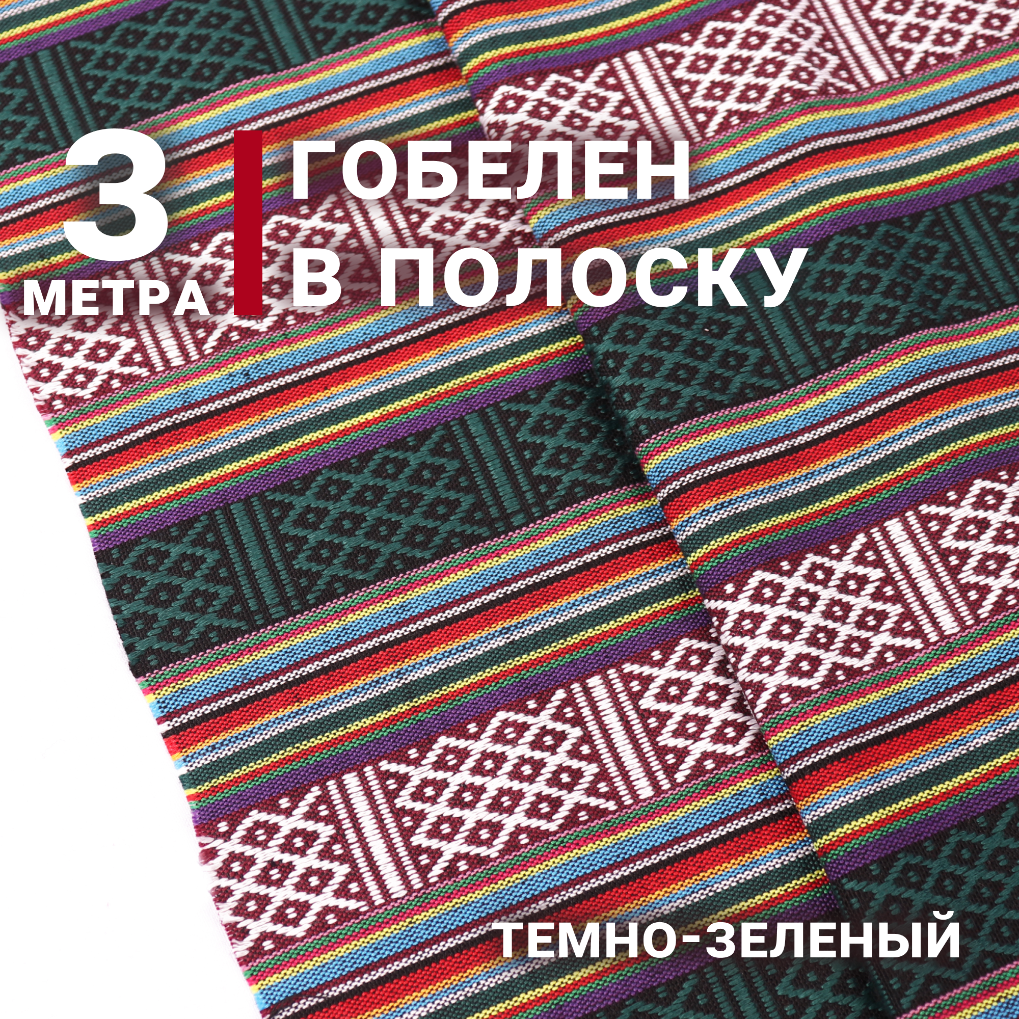 10 цен на Ткань для шитья Гобелен в полоску, Цвет Темно-зеленый, Отрез 3м х 150см, Плотность 215г, жаккардовый орнамент Ткань