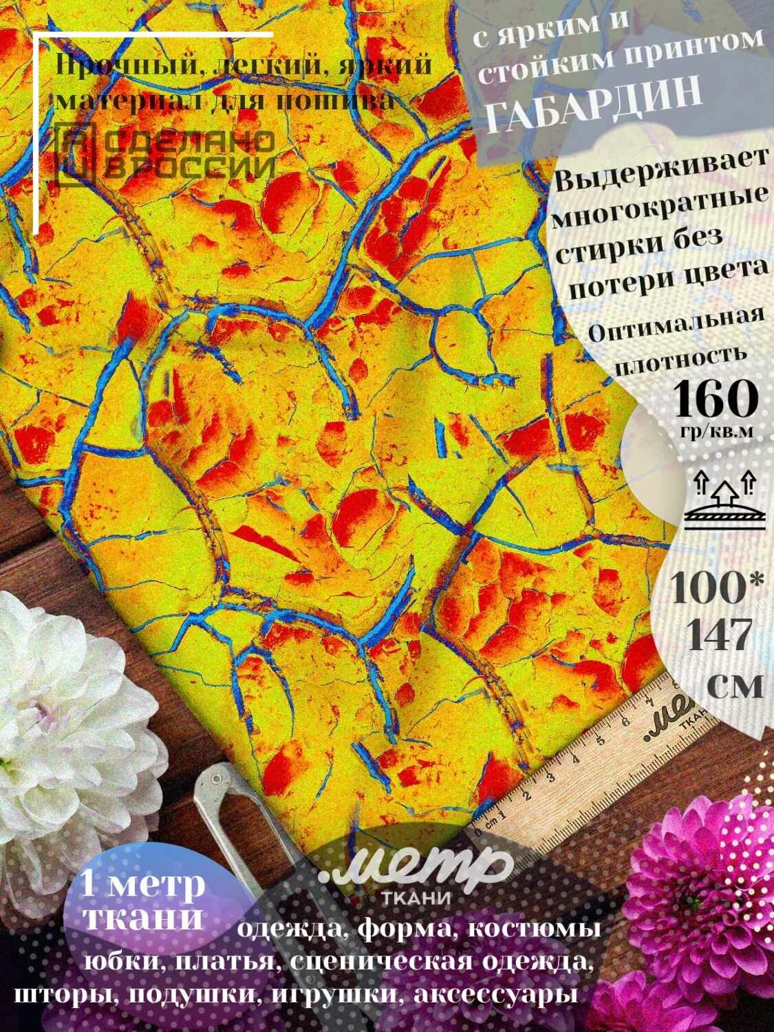 Ткань габардин с принтом для шитья, рукоделия, одежды. 160 гр/м2, размер 150*100 см, отрез любой длины 714 ₽