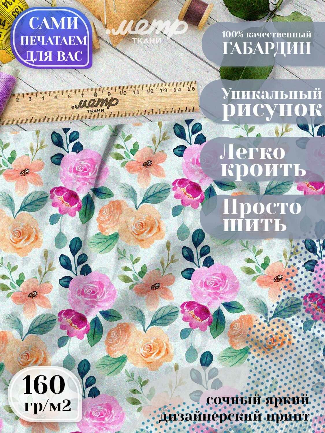 Ткань габардин с принтом для шитья, рукоделия, одежды. 160 гр/м2, размер 150*100 см, отрез любой длины 714 ₽