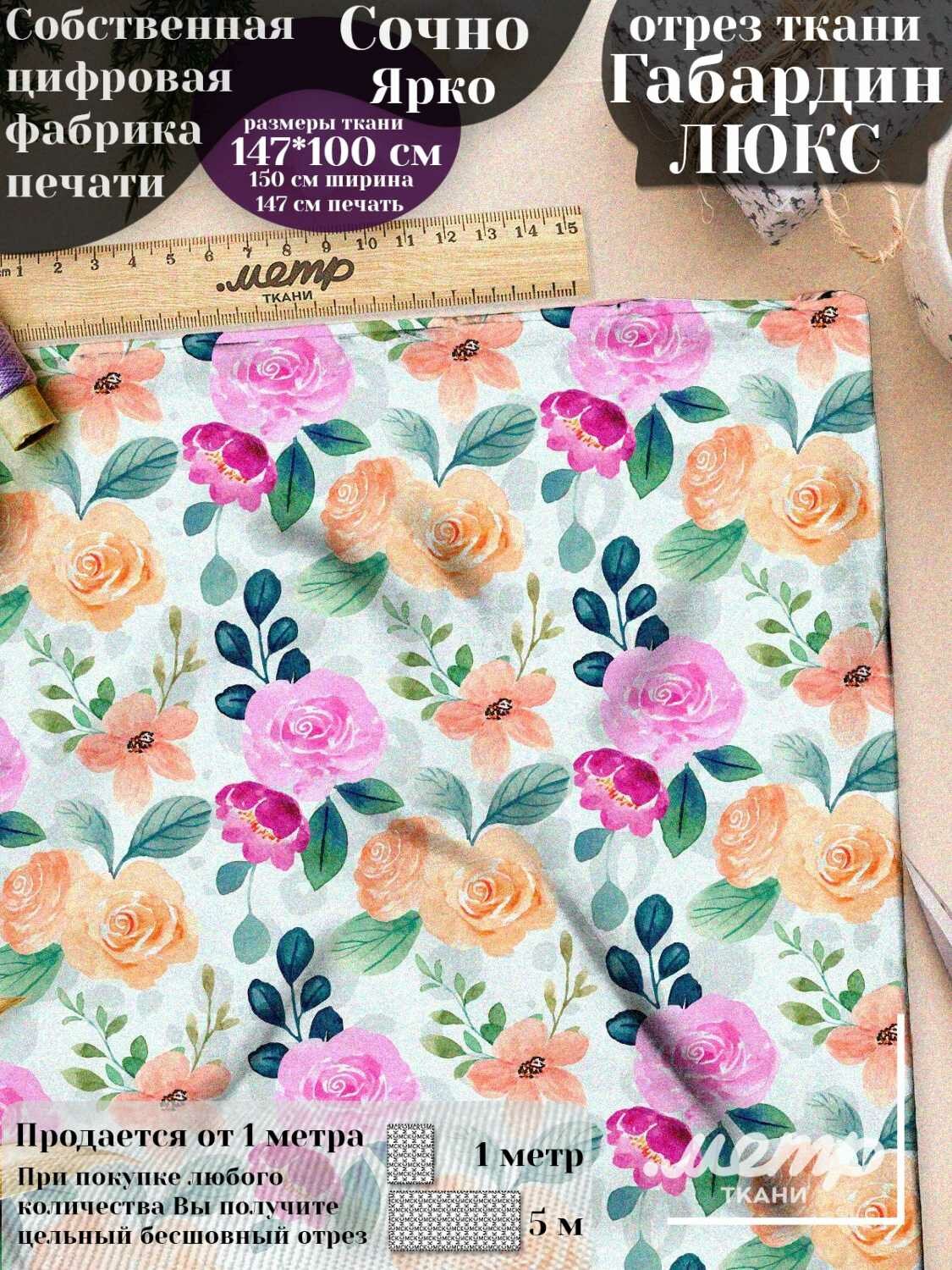 Универсальная ткань габардин с принтом для платьев, штор, подушек. 150*100 см, 160 гр/м2, отрез любой длины 710 ₽