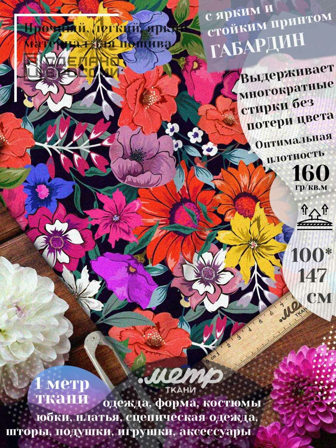 Универсальная ткань габардин с принтом для платьев, штор, подушек. 150*100 см, 160 гр/м2, отрез любой длины 710 ₽