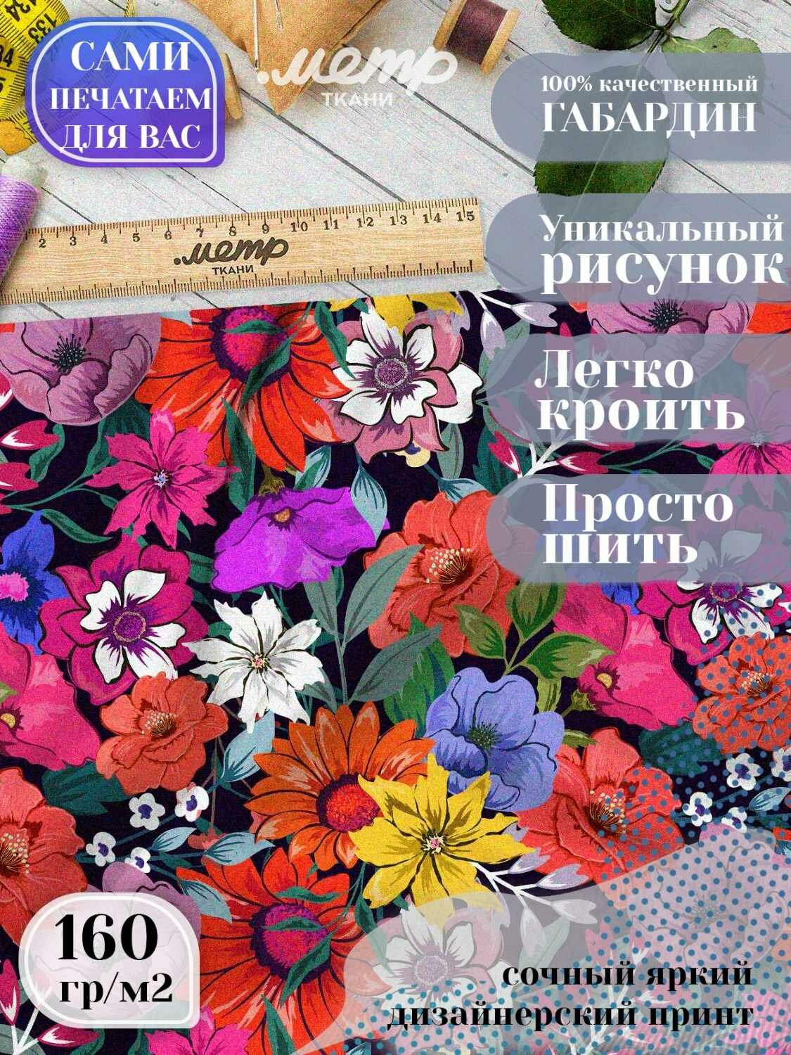 Ткань габардин с принтом для шитья, рукоделия, костюмов. 150*100 см, 160 гр/м2, отрез любой длины 710 ₽