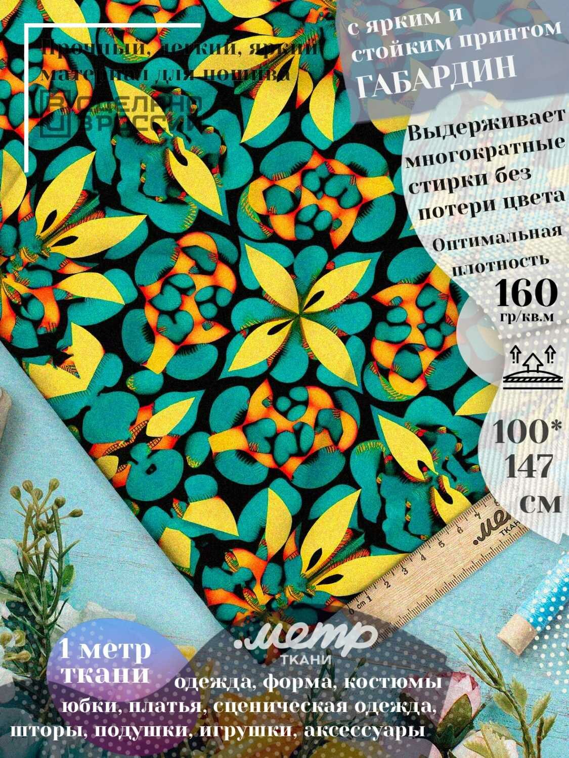 Универсальная ткань габардин с принтом для платьев, штор, подушек. 150*100 см, 160 гр/м2, отрез любой длины 710 ₽