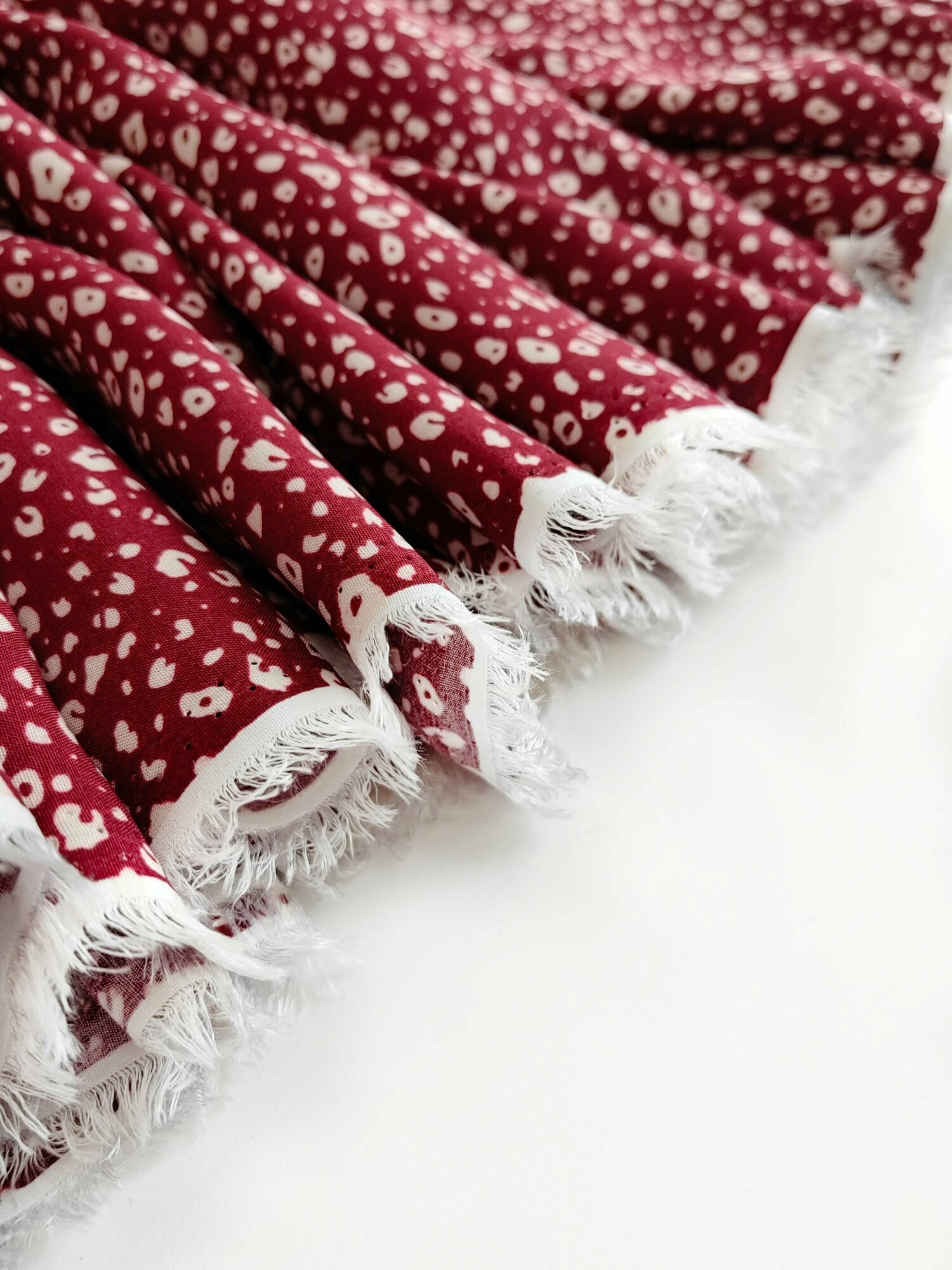 Ткань для шитья блуз, платьев, юбок 100% Вискоза штапель с мелкими пятнышками на бордовом "Вишневый леопард" 150х145 см информация:
