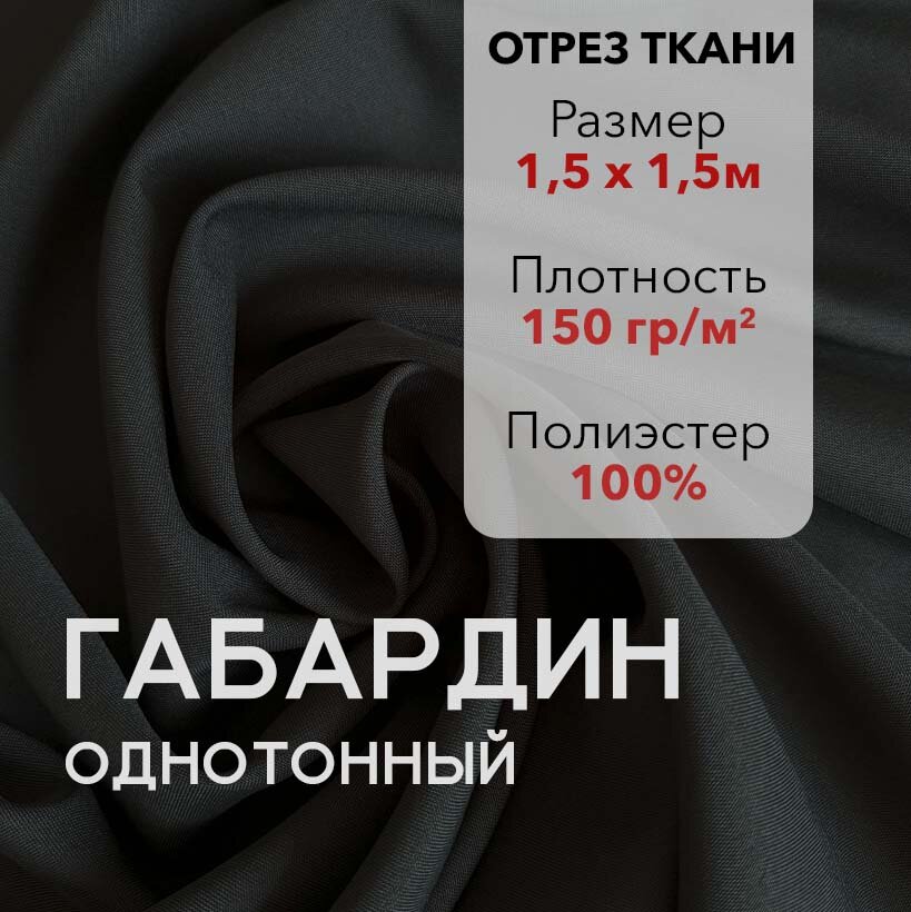 Ткань для Шитья Габардин Темно-Серый, Отрез 1,5 м, плотность 150 г/м2, ширина 150 см, для шитья и рукоделия 464 ₽