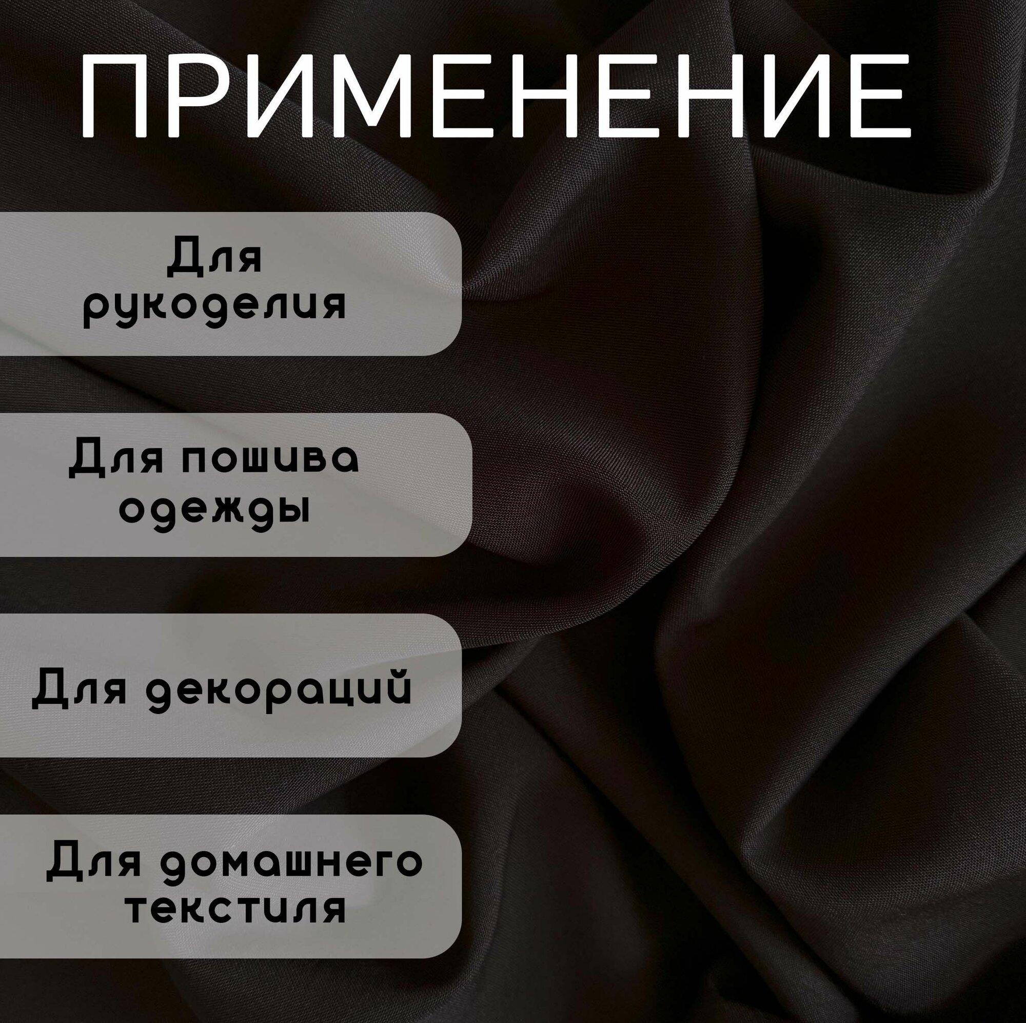 Ткань для Шитья Габардин Черный, Отрез 2,5 м, плотность 150 г/м2, ширина 150 см, для шитья и рукоделия 650 ₽