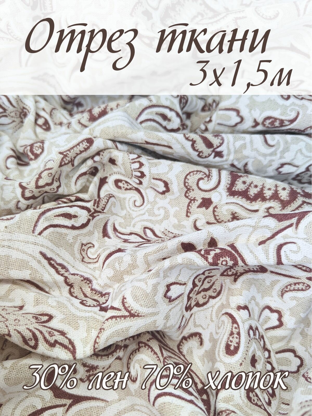 10 цен на Ткань полульняная с принтом 3х1,5м Бежевые Огурцы