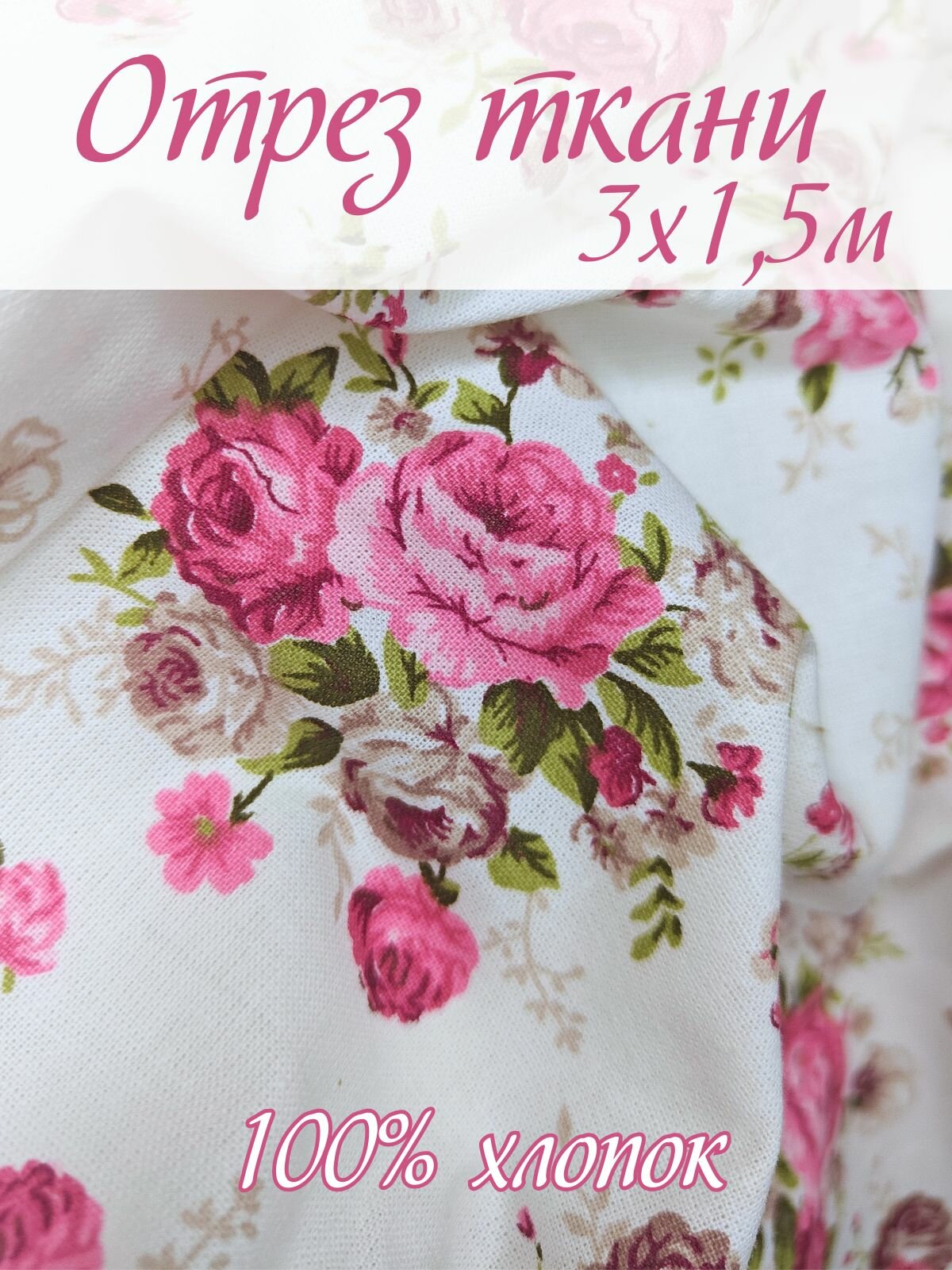 10 цен на Ткань хлопковая с принтом 3х1,5м Розы