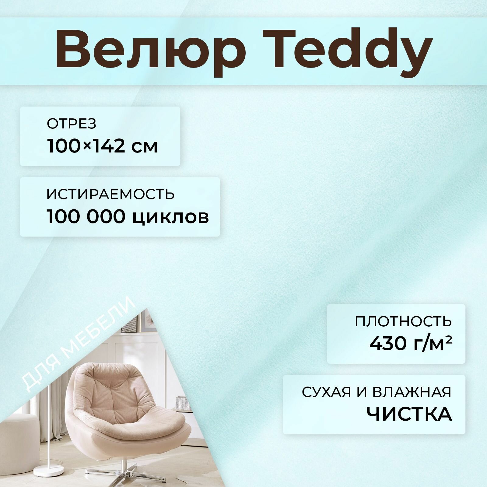 Отзывы на Мебельная ткань велюр Teddy 28 Бело-голубой 1 погонный метр шириной 142см, материал для обивки и перетяжки мебели антивандальный