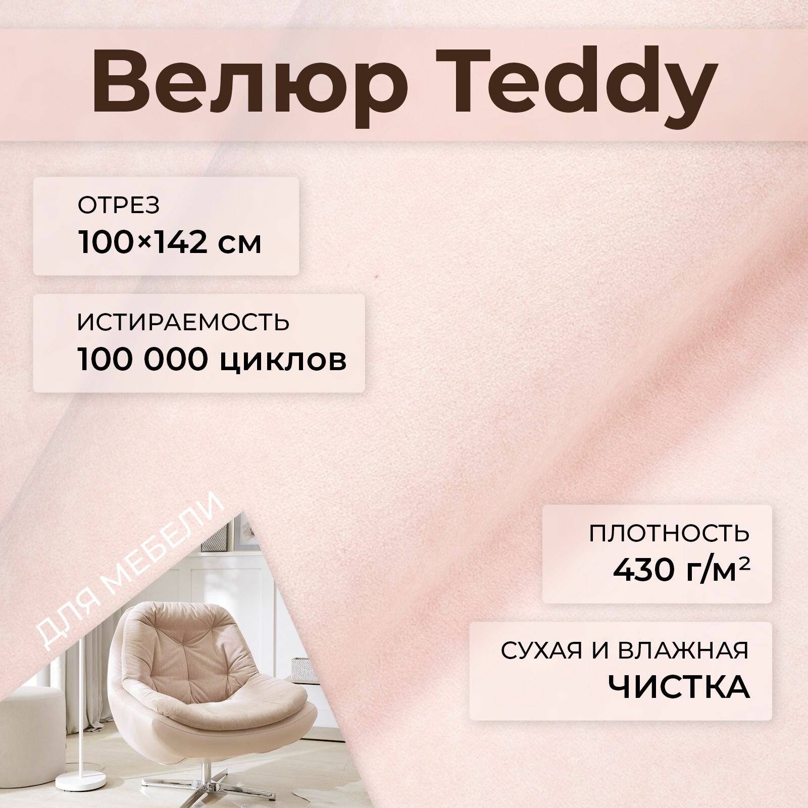 Мебельная ткань велюр Teddy 26 Бежево-розовый 1 погонный метр шириной 142см, материал для обивки и перетяжки мебели антивандальный 1 530 ₽