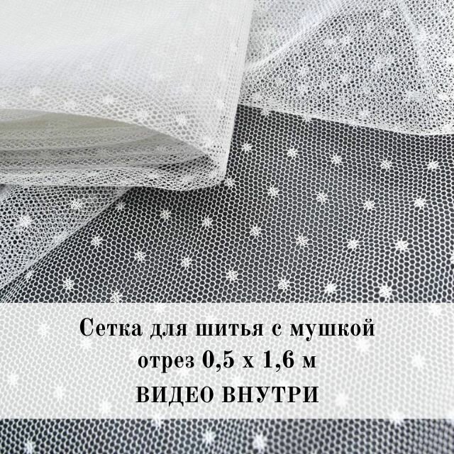 Отзывы на Сетка для шитья в мушку. Ткань сетка для декора нижнего белья и одежды белая. Фатин в горошек. Отрез 0,5 м х 1,6 м