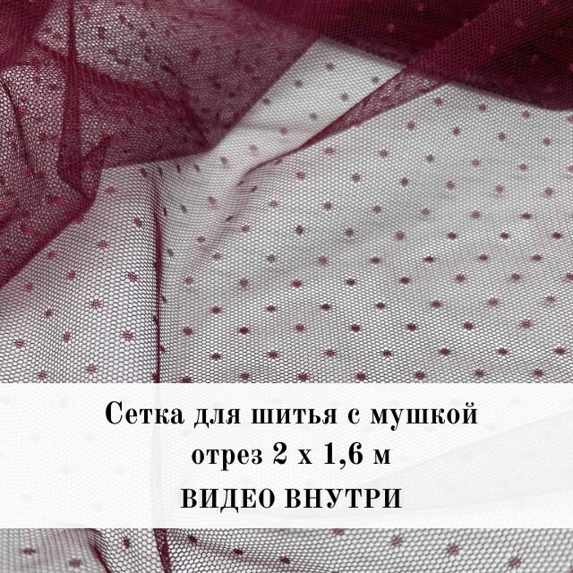 Отзывы на Сетка для шитья в мушку. Ткань сетка для декора нижнего белья и одежды Красная (бордовая)/Вино. Фатин в горошек. Отрез 2 м х 1,6 м