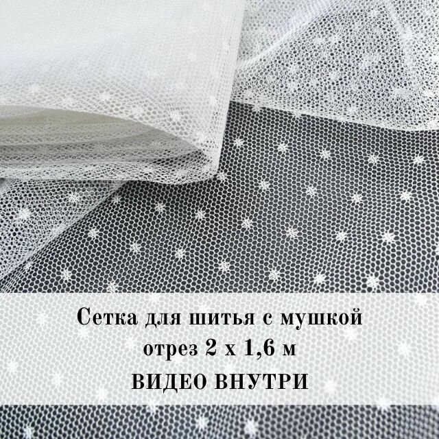 Отзывы на Сетка для шитья в мушку. Ткань сетка для декора нижнего белья и одежды белая. Фатин в горошек. Отрез 2 м х 1,6 м