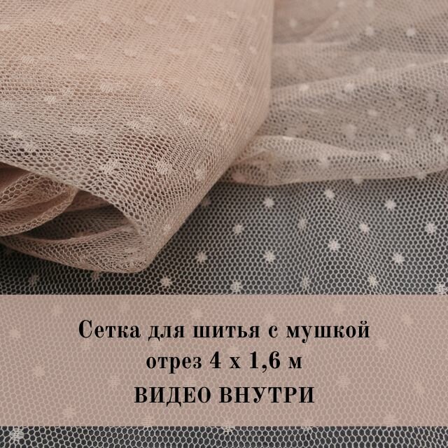 Сетка для шитья в мушку. Ткань сетка для декора нижнего белья и одежды телесная. Фатин в горошек. Отрез 2 м х 1,6 м 670 ₽