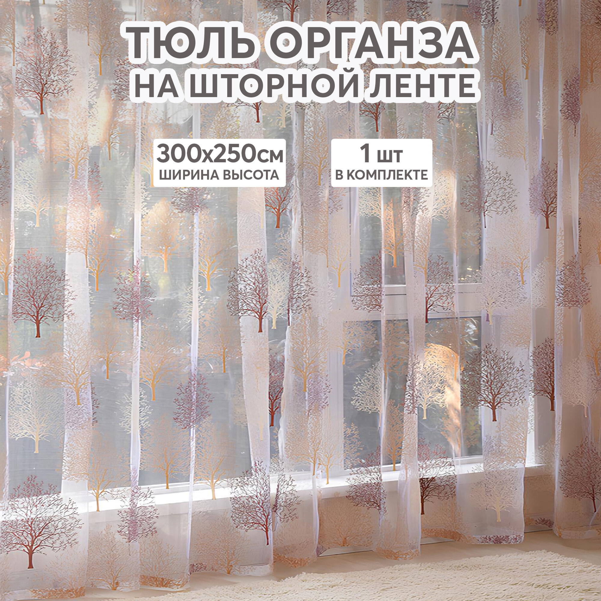 Отзывы на Тюль с рисунком деревья цветная коричневая 300х250 см, вуаль белая для зала, спальни, кухни, длинная органза, занавески