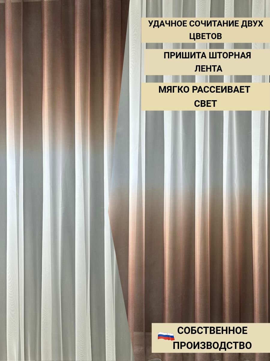 Тюль градиент в гостиную, в спальню, на кухню на шторной ленте 400х250 1 800 ₽