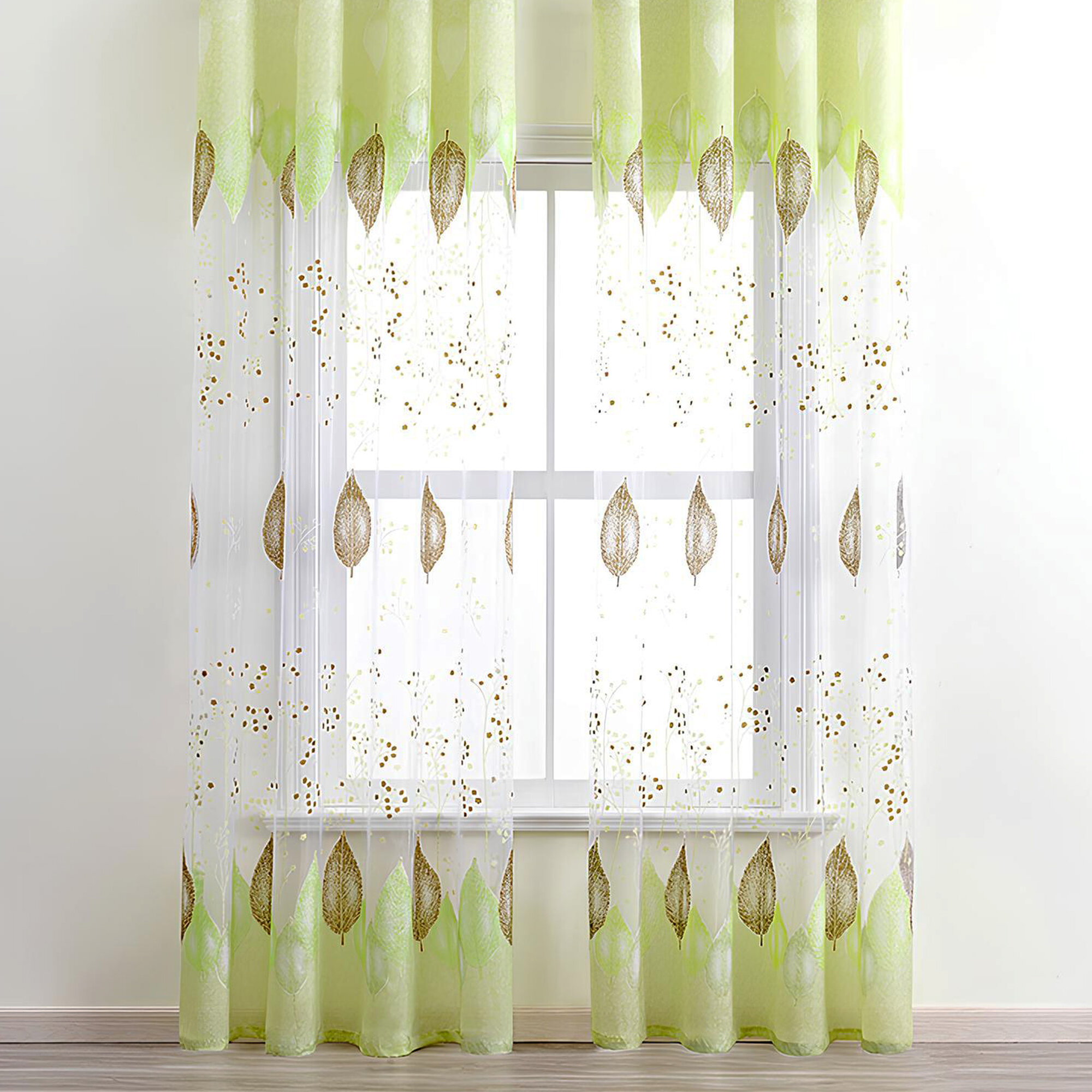 10 цен на Тюль с рисунком листья цветная зеленая 150х250 см, вуаль белая для зала, спальни, кухни, длинная органза, занавески