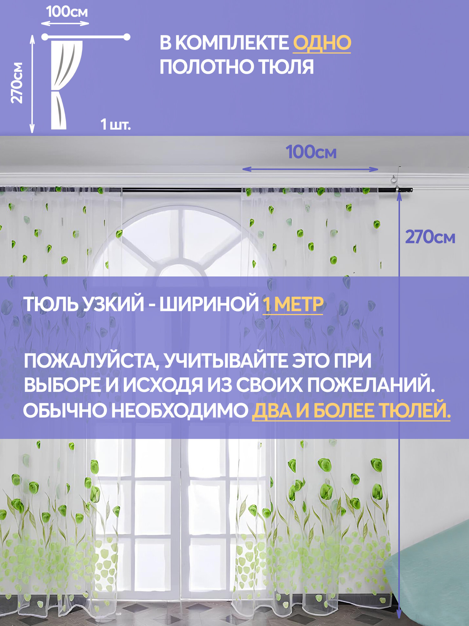 10 цен на Тюль цветная с рисунком Тюльпан зеленая 100х270 см, вуаль белая для зала, спальни, кухни, длинная органза, занавески