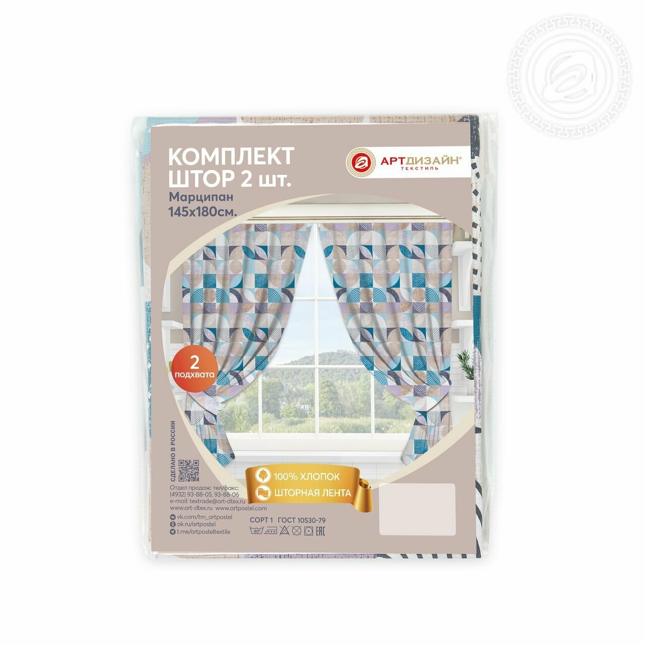 Штора для гостиной с подхватом «Марципан» 145*260см, АртПостель, рогожка, 100% хлопок, разноцветный, геометрия 1 652 ₽