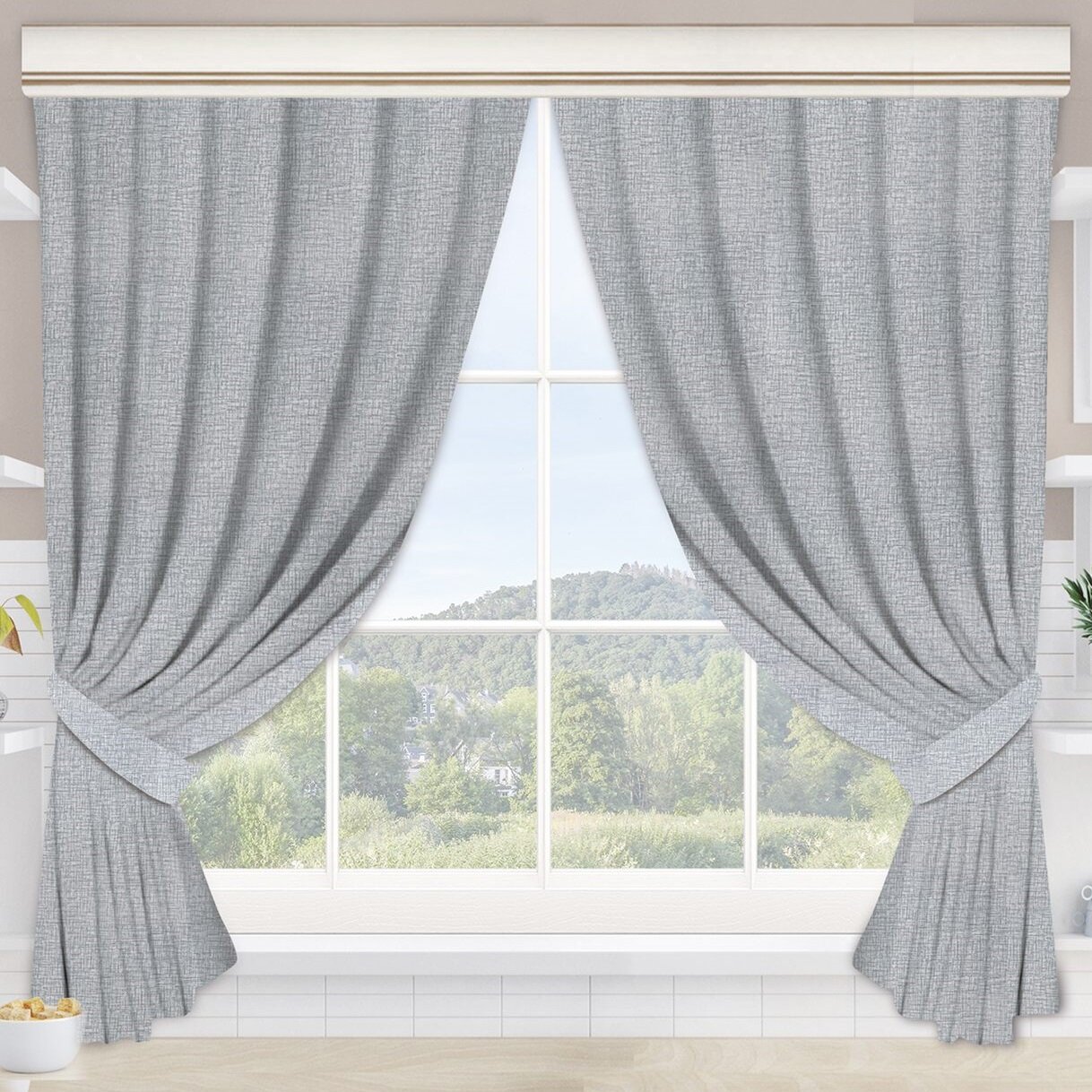 10 цен на Шторы для кухни 145х180 (2 шт.) с подхватом Лён серый