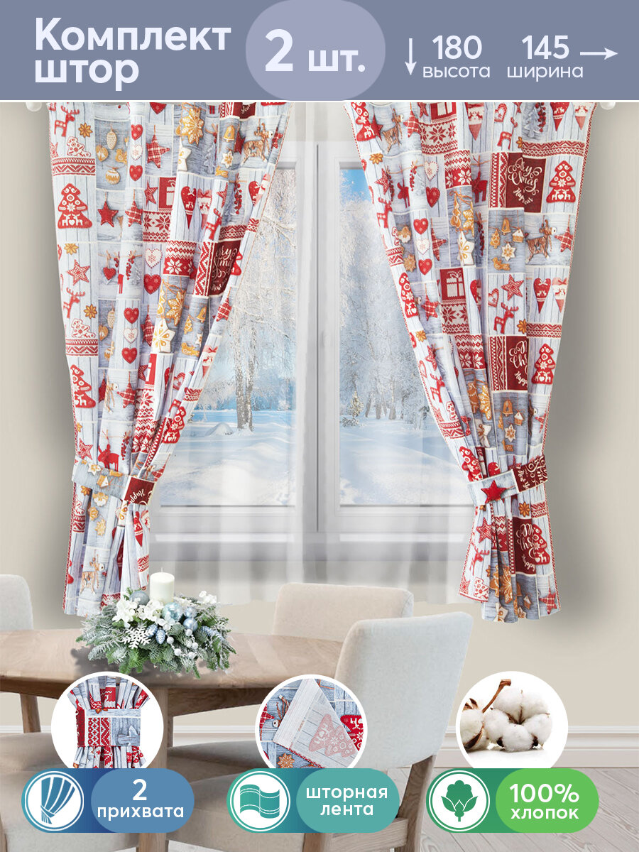 Шторы для кухни с подхватом Чудеса Ш.145.180 АРТ дизайн, 145*180, красный, голубой информация: