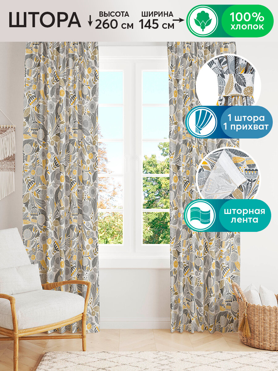 Отзывы на Шторы для гостиной с подхватом Талавера Ш.145.260 АРТ ДИЗАЙН, 145*260, серый, желтый