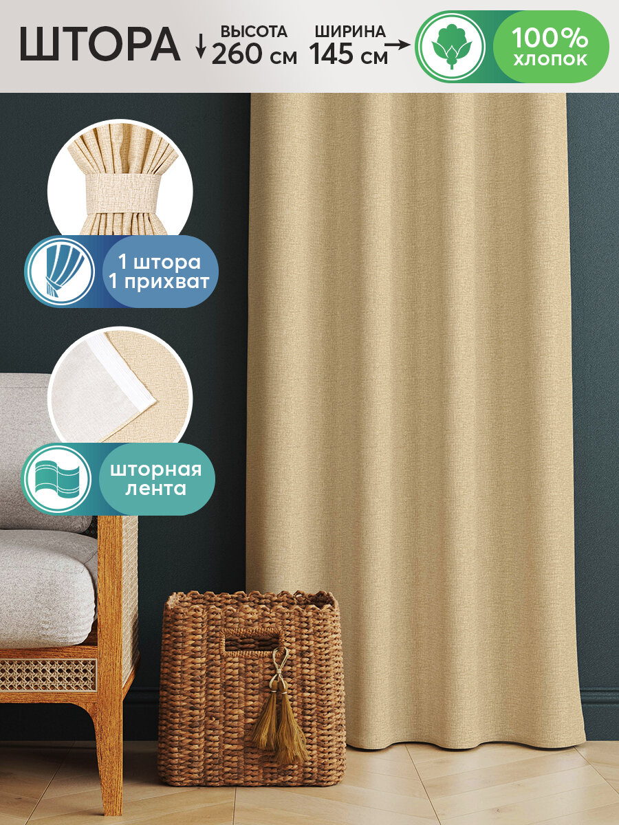 Штора для кухни/комплект 1 шт./145x260/с подхватом/рогожка/Арт Постель/Тенор 1 850 ₽